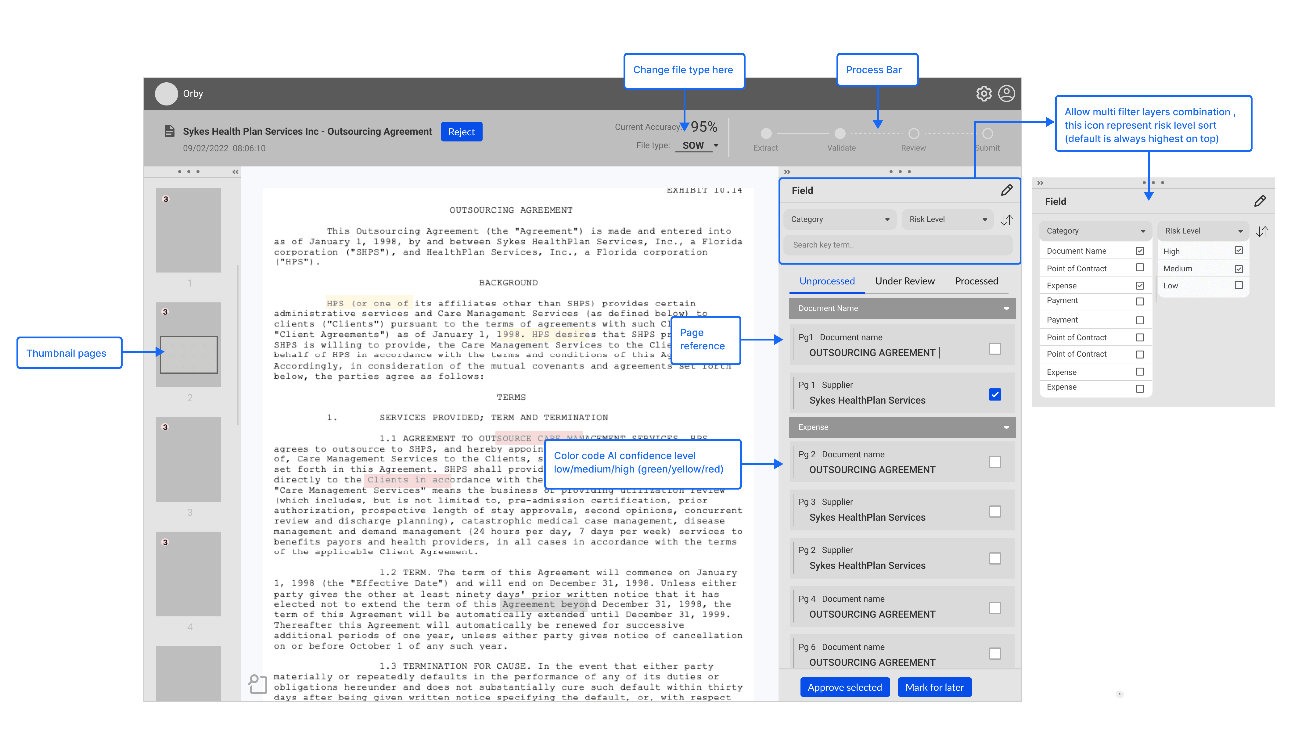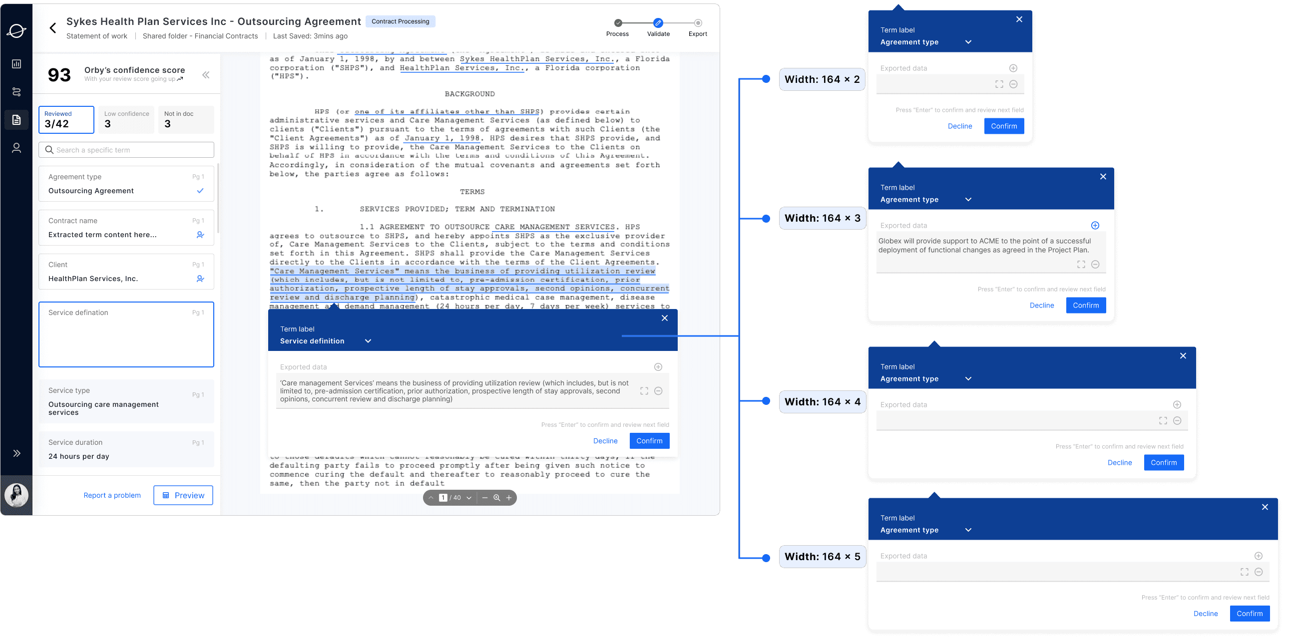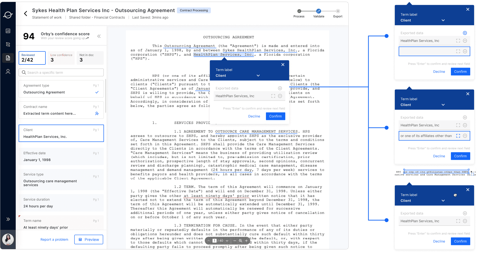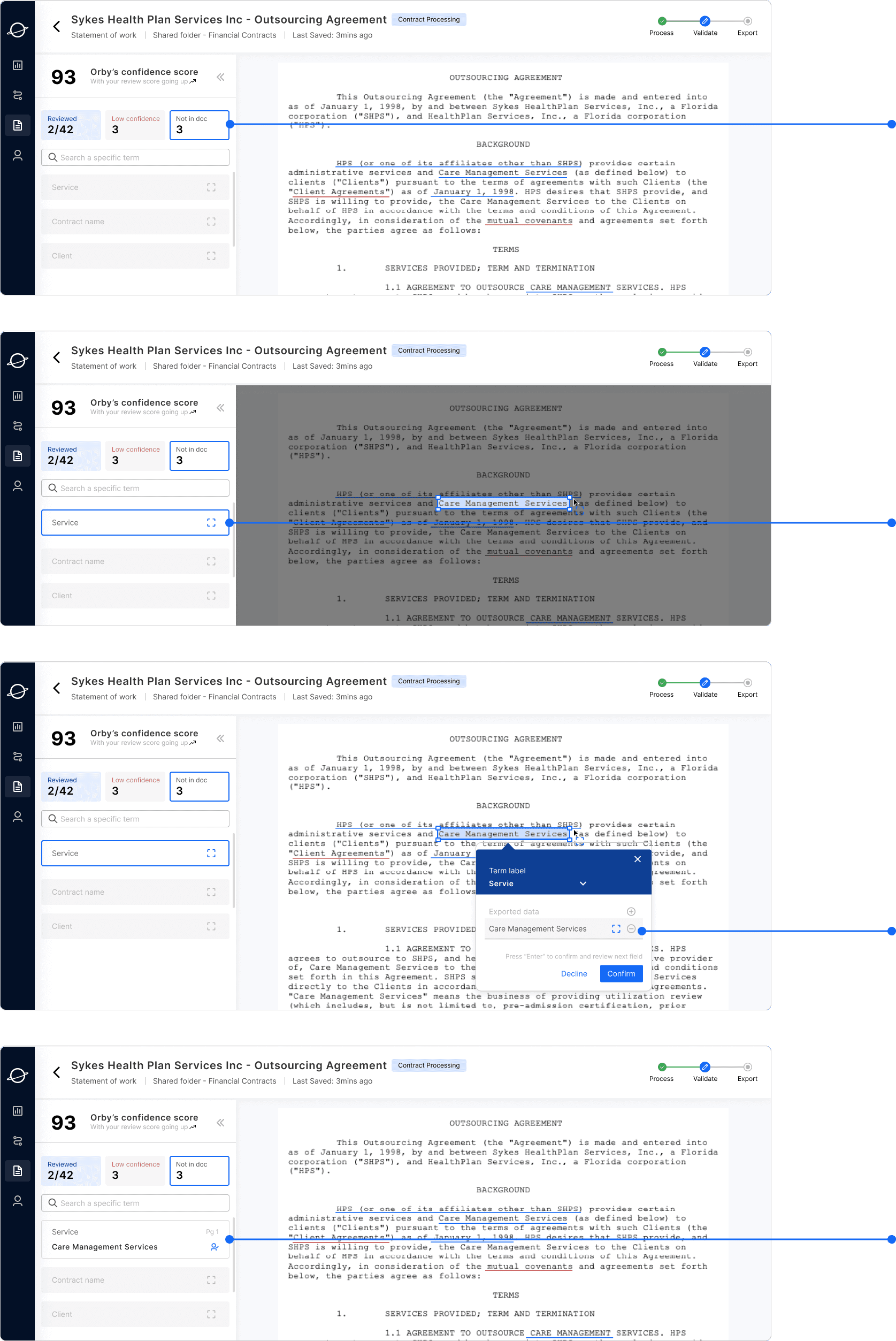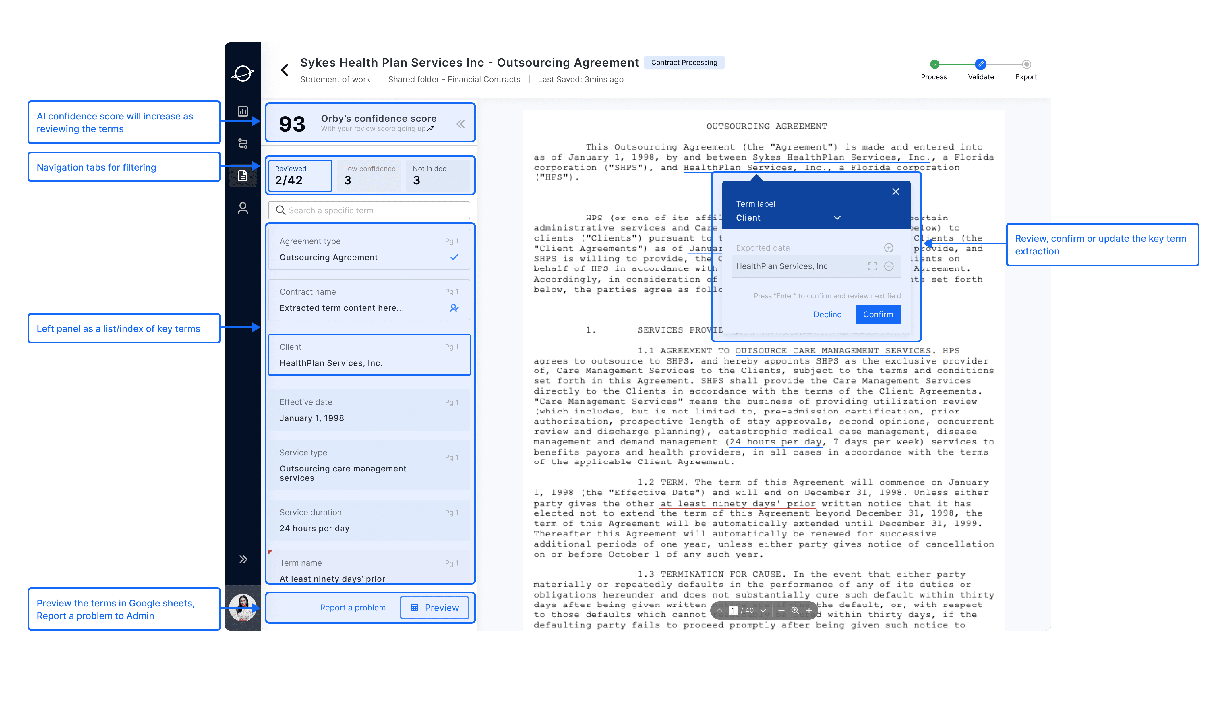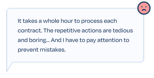 Contract processing, in general, involves time-consuming and highly repetitive tasks, presenting an opportunity for significant improvement through AI automation. Here are the key insights guiding our design: