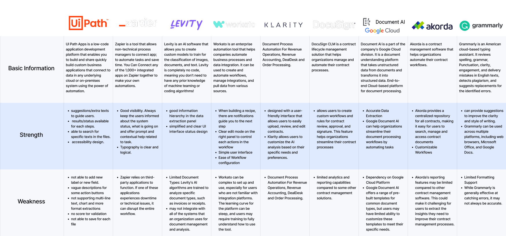 Conducting a comprehensive competitive analysis, we explored various existing platforms for workflow automation and AI-powered text/document processing to gain valuable insights.